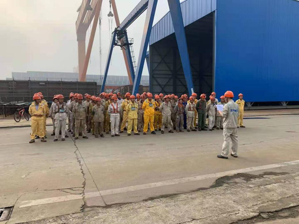 1200T風電安裝船南通豪通船務有限公司,除承接主船體制作及合攏外。更是承接了該船三分之二的特殊結(jié)構(gòu)制作及合攏(包含3個圍井分段2個固樁室)工程。這些工程對精度和焊接質(zhì)量有著較高的要求,總經(jīng)理薛志堅掛帥督導,安排最優(yōu)秀的裝配班組和最好的焊工,將一份優(yōu)異的成績單交到了船東和振華重工手中,得到了業(yè)主的肯定。